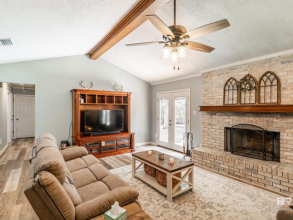Professional photos coming today! Welcome to this beautifully maintained 3-bedroom, 2-bath home nestled on a spacious half-acre lot in the Saraland School District and serviced by Kushla Water District. This home offers both comfort and versatility with a bonus room that can serve as a 4th bedroom, office, or playroom to suit your needs.Step inside to a warm and inviting living room with vaulted ceilings and a charming whitewashed brick fireplace, perfect for cozy gatherings. The updated tiled tub surrounds in both bathrooms add a modern touch, and the home is completely move-in ready with numerous upgrades.Key features include 3-year-old HVAC system and updated windows, 5-year-old fortified roof for added storm protection, large detached shop 24x 30 with a 12x30 lien to– ideal for hobbies, storage, or a home business, fenced-in backyard with a deck perfect for entertaining or relaxing. Don’t miss your chance to own this versatile and upgraded home in a highly sought-after location. Schedule your showing today! Buyer to verify all information during due diligence.