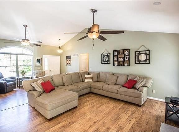Gorgeous 3 bedroom (with 4th sleeping area in lower level) 2 1/2 bath ranch home with large level fenced backyard backing to woods on a cul-de-sac! This home features vaulted ceilings, gas fireplace, hardwood like Pergo floors, updated kitchen with stone counters, breakfast bar and stainless appliances. Main floor laundry, generous sized bedrooms, walk-in closet in the master and a separate tub/shower, white six panel doors, bay windows, vinyl tilt-in windows, ceiling fans, and 2 inch white plantation blinds. The lower level offers a great family/rec area with additional sleeping area and bath. There is a great deck off of the breakfast room leading to the backyard. The dining room is being used as a sitting area/living room. This home offers lots of curb appeal and is definitely a must see inside! Grants and USDA money available in this area and seller is offering a home warranty!