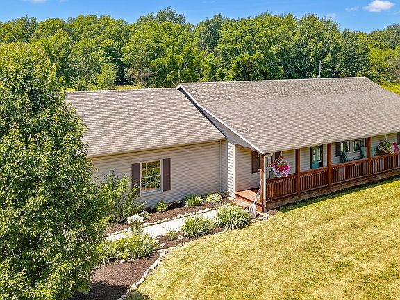 Magazine worthy setting on 17 ACRES!!! This opportunity just wont come around everyday! Plenty of room to keep neighbors at a distance or have a few animals. Great ground for pasture or riding. Quiet neighborhood and peaceful country setting. Property boast a 3 bedroom, 3 bath home on finished walk-out basement. Enclosed porch surrounds the home. Main level has been tastefully decorated with eye pleasing color and decor. Huge 42' x 66' heated and insulated pole barn including a 16' O.H.D. Building has compressor piping throughout. There is also a 200 yard shooting range on property. Schedule your showing today before it's gone!
