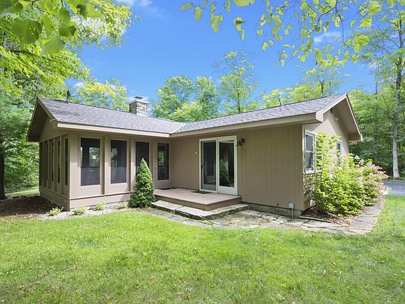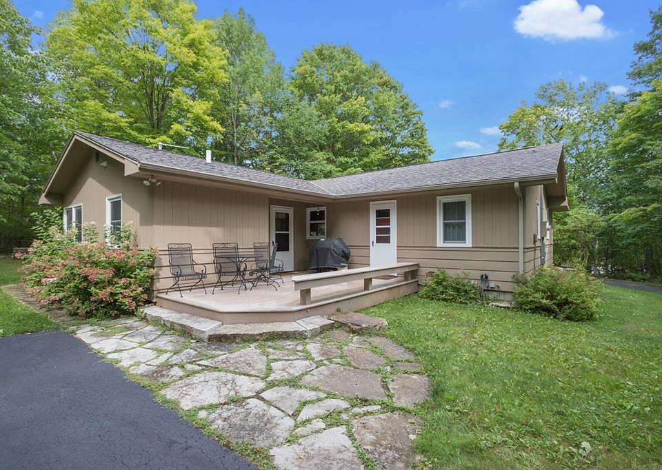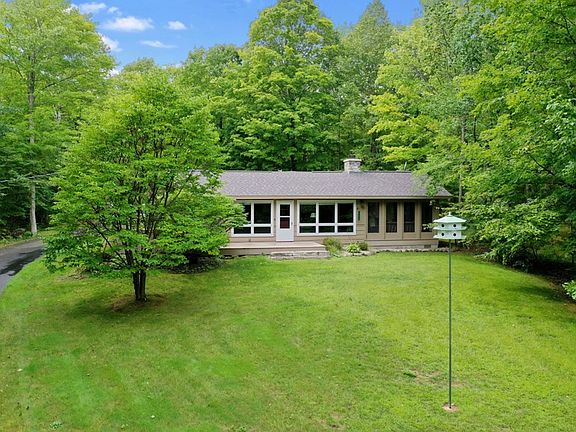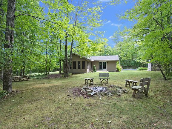 Lovely, storybook, updated year around home or adorable cottage. Master bedroom has a walk in shower and deck outside the sliding glass windows. Refinished oak floors throughout the home. Updated kitchen with granite counter tops. The living room, kitchen and dining have a vaulted cedar ceiling with wood beams. The lot is two combined. Everything has been updated. Water access to Kangaroo lake just a short walk down the road.