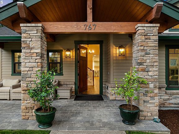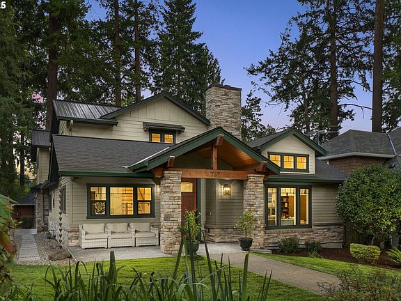 Set on an inviting corner lot in Lake Oswego’s sought-after First Addition, this cedar and stone Craftsman blends timeless curb appeal with expansive spaces —just a short stroll to Tryon Creek trails, boutique shops, restaurants, and exceptionally ranked Lake Oswego schools. With tree-lined streets and a lively neighborhood, this home makes it easy to enjoy the charm and lifestyle the community is known for. Inside, the living room impresses with beamed ceilings, wide-plank hardwoods, and a grand stone fireplace. A sunny nook and striking half bath add character, while the dining room opens through French doors to a composite deck for indoor-outdoor living. The chef’s kitchen features Sub-Zero and Thermador appliances, quartz counters, two-tone cabinetry, and thoughtful storage—equally suited to everyday meals or whipping up holiday feasts. The upstairs primary retreat is filled with natural light and highlighted by a spa-inspired bath, while the main level has its own secondary suite. Downstairs is a kitchenette, bedroom, full bath, and large bonus room with exterior access—perfect for guests or multigenerational living. A low-maintenance yard, metal & composition roof, and an oversized garage with EV charging complete this gem in the heart of one of Lake Oswego's most attractive neighborhoods.
