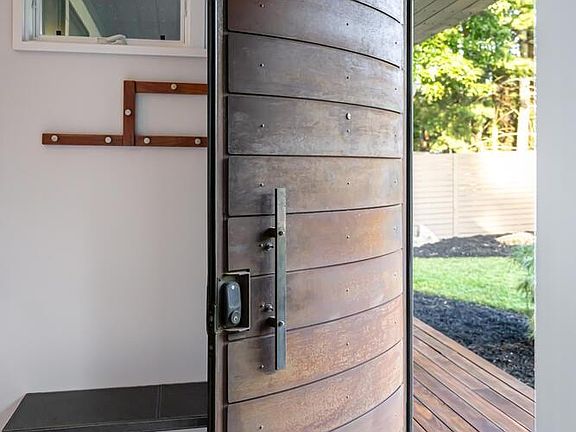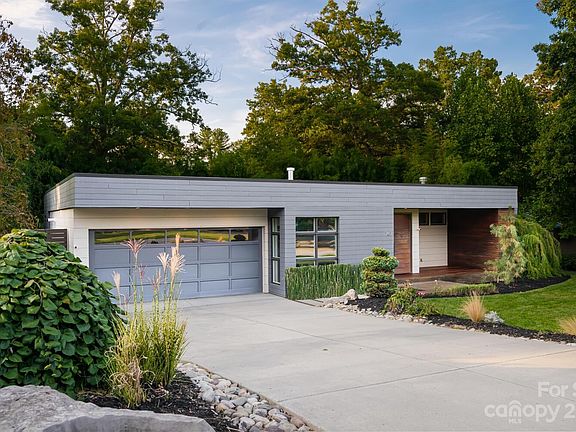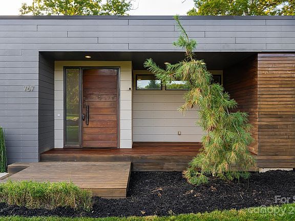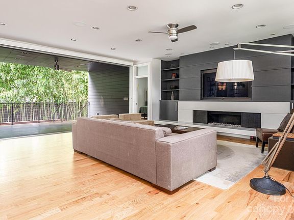 Public Open House on Sun., 10/8 Cancelled. This cool, custom crafted modern home offers one level, efficient living central to everything. The smart floor plan is centered by an open living space, both indoors & out, separated by a sliding pocket door with a gas fireplace in both. From there the split plan has the primary bedroom ensuite on one side, 2 bedrooms & a central bath on the other plus a front bedroom/office. Custom kitchen comes with extensive stainless appliance package with professional gas range plus extra cooling & freezer drawers & beverage appliance with quartz counters. Key features include; custom steel front door, oak flooring throughout, custom closets, cabinets & built-ins, electronic blinds & Crestron smart home system. Both the front & back offer covered porches constructed with Ipe where you can enjoy your zen inspired gardens. Located with easy access to downtown, the hospital & south Asheville amenities. 4th bedroom is currently an office with no closet.