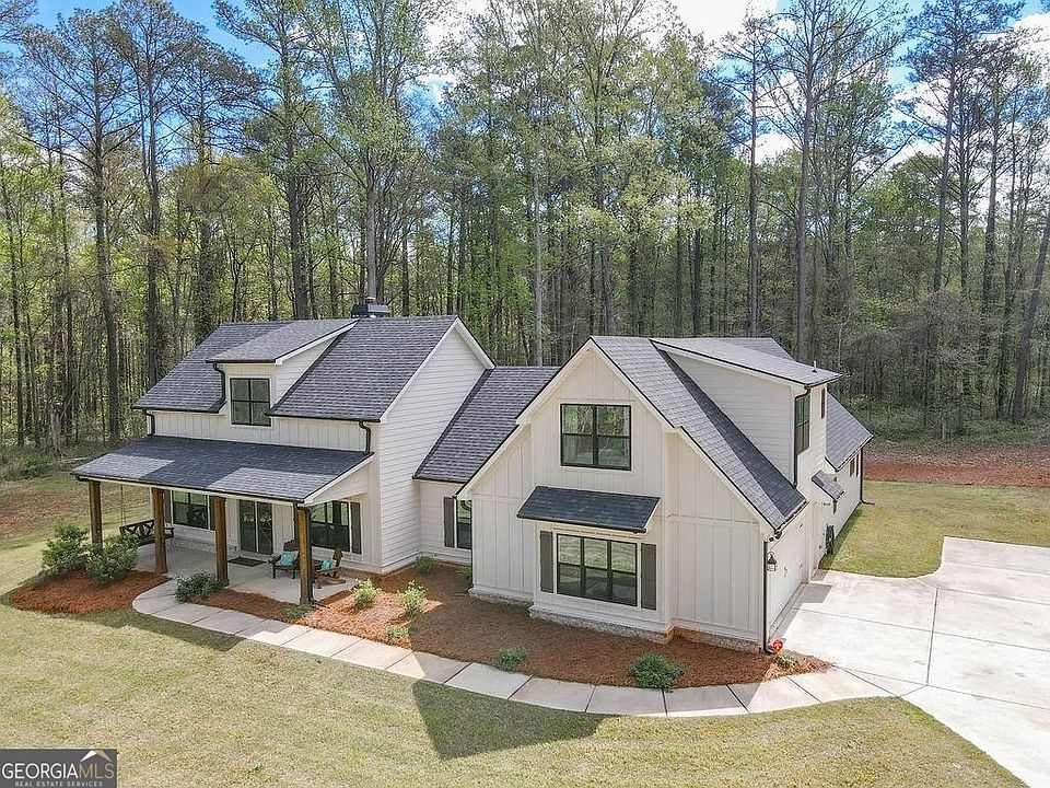 5 BR on 5 Acres just 4 miles from Publix in Senoia! Over 3,150 Sq FT! Only 2 years old! Stunning Modern Farm House with everything you are looking for - Open Floor Plan, Vaulted Great Room with Built-ins, Dining Room, Stunning Kitchen with Island and Coffee Bar, Walk-in Pantry. Best Floor plan, The Mill Creek, on the best 5 Acre Lot! Not on private Rd. No HOA. On Main: 4BR, 2.5 Bath Ranch Home PLUS 1 BR, 1Bath upstairs. Favorite Feature: Master Bedroom to Bathroom to Closet directly to Laundry Room back to hallway! Split Bedroom plan has 3 Bedrooms and hall bath on the other side of the house. Generous Covered Porches in the front and back overlooking private yard. Wonderful opportunity to enjoy terrific Senoia restaurants and events.