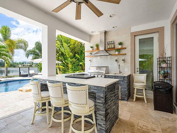 - Exterior features: Auto Sprinkler, Awning(s), Built-in Barbecue, Custom Lighting, Lake/Canal Sprinkler, Outdoor Kitchen, Zoned Sprinkler