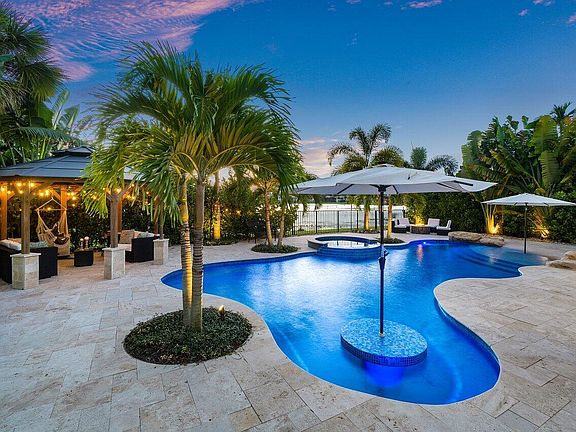 Discover your dream home in the Palm Beaches! This 5-bed, 5-bath, built-in 2014 in Wellington View by Toll Brothers is an extraordinary find that will make every day feel like a vacation! Notable features include a 3-car garage, freshly painted exterior, smart home technology, and a gourmet kitchen. Outside, your private oasis awaits with expansive lake views, a newly added, fully automated beach entry saltwater pool and hot tub, extended travertine decking, an outdoor kitchen, a built-in gas fire pit, and a gazebo. The first floor showcases an open-concept family room/ kitchen with upgraded stainless appliances, 6-burner gas stovetop, double ovens, granite countertops, an oversized island, a walk-in pantry, and ample storage. Formal living and dining rooms, an office/5th bedroom, cabana bath, half bath, and laundry complete the first floor. Upstairs, the primary suite, three additional bedrooms with gorgeous lake views, all with walk-in closets and ensuite baths, and an oversized bonus/flex room currently used as a movie room await.