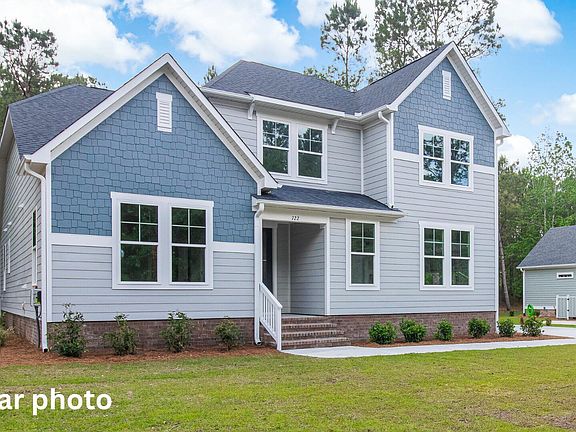 The Hamilton is all dressed in durable fiber cement siding and trim with an elevation featuring board and batten and horizontal siding. Shielded with a 30 year architectural shingle roof you'll enjoy the benefits of purchasing new construction for years to come. Your irrigation system will keep your fully sodded yard looking pretty. Construction is underway with an expected completion date of August 2023. The Hamilton is currently built on Hollybriar Loop Rd right down the street. The images you see are of this home.