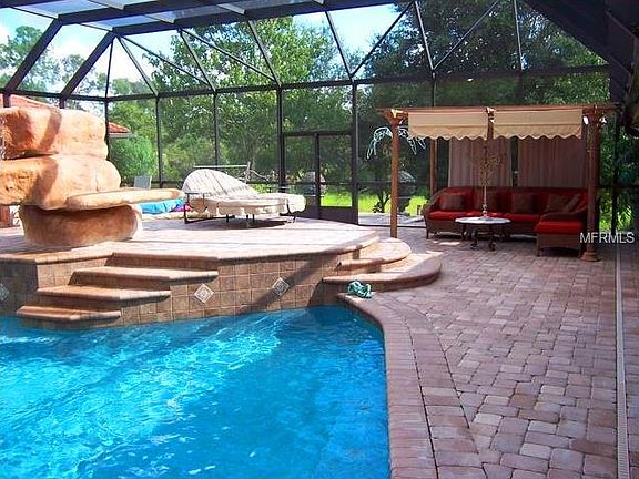 Absolutely amazing custom built pool home w/ approx. 10,794 SF under roof! Enjoy the privacy of this gated 11+ acre estate w/ its 5 bedrooms & 5 ½ baths. This grandiose home was once home to New Kids on the Block who lived & practiced there while working their way to fame! There is an 18x14 grand entry w/ ornate double glass doors, marble flooring, cathedral ceilings, elegant chandelier & a three-level spiral stair case. The 18 x 16 formal dining rm w/ picture window opens out into a 16x14 dinette area w/ view of pool, pass through gas fireplace between dinette & 37x16 family rm w/ built in custom wet bar, dishwasher, wine fridge, whole house sound system, beverage center, 18 x 16 formal living rm. The charm of this home is abundant w/ crown molding, 20 x 15 gourmet kitchen w/ large granite island, Dacor range, pendant lights, 2 dishwashers, Corian countertops, 2 closet pantries, 31 X 17 wine tasting room, 24 x 15 main Master Suite w 2 walk-in closets, a 24 x 19 spa-like room w/ separate vanities, garden tub, 2 shower heads. The second spacious 29 x 23 Master Suite includes a sitting room & triple slider to private veranda & 2 laundry areas. Upstairs is a theatre rm w/ balcony & a loft/bedroom. Showcasing this home is a resort-style, pavered pool area w/ a huge custom 9 ½' deep exposed aggregate, screened-in pool w/ waterfall. There is a Guest quarters w/ full bath, kitchen, 8' breakfast bar & double leaded-glass doors. There is approx. 4,047 SF basement not under air for plenty of storage & business.