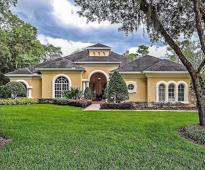 WOW, THIS IS A MUST SEE FOR YOUR PICKIEST BUYER WHAT A VIEW from this ARTHUR RUTENBERG CUSTOM DESIGNER HOME located in the UPSCALE GATED COMMUNITY of ESTATES ON LAKE MILLS. NO REAR NEIGHBORS but you may see a FEW DEER and FAMILY of OTTERS as you enjoy the VIEW of CONSERVATION and NATURAL POND flowing into LAKE MILLS. THIS GORGEOUS 5 BEDROOM POOL HOME has so MUCH to OFFER: HEATED SCREENED POOL & SPA w FOUNTAIN, BRICK PAVERS on FRONT ENTRANCE & REAR LANAI, 18 inch TRAVERTINE TILE, 8ft double door entry, VOLUME ceilings, CROWN MOLDING, 3 way split Bedroom plan, SURROUND SOUND w 4 room controls, double TRAY CEILINGS w lighting. Stunning GOURMET KITCHEN w 42/30 inch staggered cabinets, Under Counter Lighting, GRANITE COUNTERS, diagonal tile backsplash, ISLAND, BUILT in WALL OVEN & MICROWAVE, breakfast bar & BREAKFAST NOOK with FRAMELESS WINDOWS overlooking pool. Open floor plan is Great for Entertaining. Home is wheelchair accessible with a fantastic In-Law type Suite including a 22x15 BONUS ROOM w beautiful view. The 3 Car Garage has an additional Flex space & oversized parking pad. Community has Tennis & Basketball courts & playground PLEASE VIEW THE VIRTUAL TOUR & ALSO CLICK PANARAMA TO SEE WHAT THIS HOME HAS TO OFFER. SEE ATTACHED FEATURE LIST FOR MORE UPGRADES