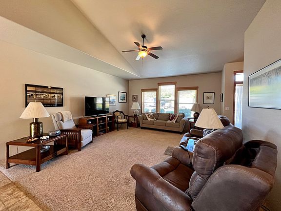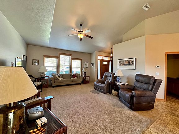 One level, easy care home - large windows, nice and bright. Open floor plan open to dining and kitchen areas. Cabinets in kitchen/hall area. Sliding door to laundry room also w cabinets and then into garage. Down the hall 3 bedrooms - hall bath has tub/shower. The primary bedroom has walk in shower. Very well cared for property. Don't miss the patio off the back with fencing and feeling of privacy, Seller will provide home warranty for buyer up to $345.