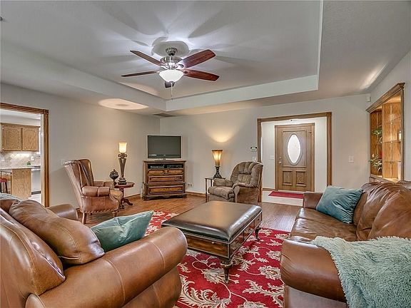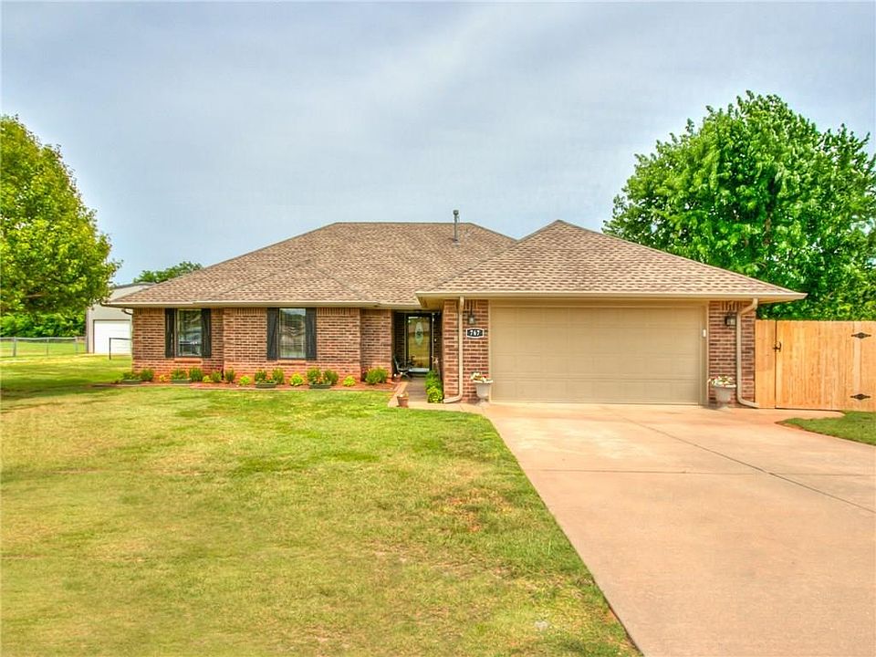 Beautiful 3 bedroom 2 bathroom home on almost 2 acres with a HUGE 30' x 50' workshop! Updated kitchen with stainless steel appliances, tile flooring, recessed lighting, and beautiful granite countertops. Tray ceilings in the spacious living room and dining room. Ceiling fans and wood flooring in the living room and bedrooms. Utility room with an under-mount stainless steel sink, brushed nickel faucet, and fluorescent LED lighting. Newer roof with impact resistant shingles, whole house guttering with gutter guards, and a 6 foot cedar fence across front south and down south side of property. Dog run on the side of the home, to keep your pets close by and an outdoor storm shelter. Located in the Bridge Creek School district. Close to Mustang shopping centers, KT's Barbecue, Dakota's, Wal-Mart, and Skate Fever. Welcome home!