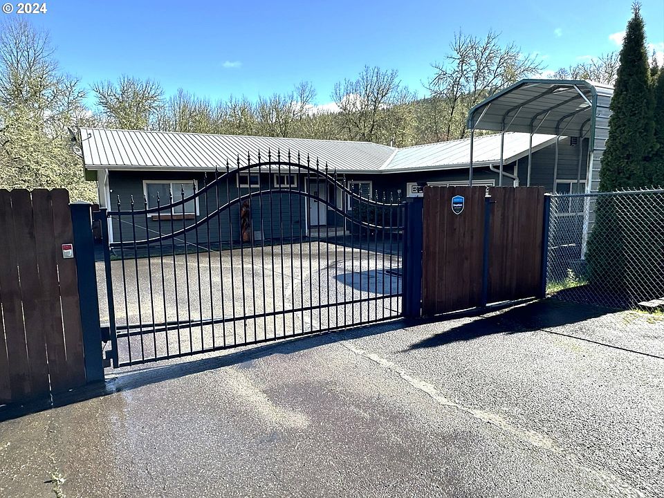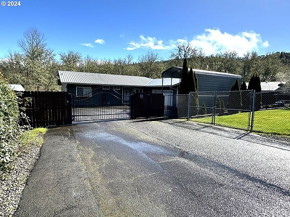 One level 1996 built home nestled on a .38 acre lot in town with seasonal creek frontage. Having both living and family rooms this home offers generous sized bedrooms, attached oversized garage, concrete patio and large private fenced back yard, perfect for your garden. Paved driveway entrance with black iron security gate and covered RV parking. Great location just minutes from downtown Roseburg.
