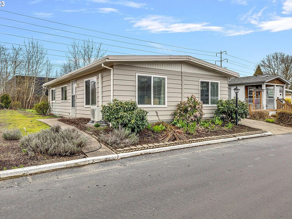 Stunning recently renovated double wide manufactured home located at Heritage Village Mobile home park. Built in 1978, this 2 bed, 2 bath, 960sqft home offers a large living room, dining room space, newly updated kitchen with granite counter tops, spacious guest bed, 2 full baths, large primary with walk in closet, storage shed, massive private back yard and more. Recent update include; new floors, new windows, new water heater, new wood blinds, new kitchen cabinets/counter tops and more. Space rent is $1,012/month.