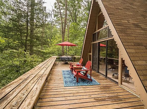 PRICED TO SELL!!! Contract acceptance deadline should please be 8:00 PM, 08/15/2020. Updated 2 Bedroom / 1 Bath chalet on the highly sought out Lake St Gallen! This cozy, secluded chalet is nestled on 2.3 wooded acres. The updated kitchen has newer appliances, cabinets and plenty of storage. There are cedar plank ceilings through out & a terrific stone fireplace...perfect for snuggling on a crisp Autumn evening. In addition to the bedrooms is a large loft area capable of 1 queen & 1 full size bed. The kids are sure to enjoy climbing the rope ladder & whisking down the slide. How about a game of tether ball? Included in the sale (at zero value) are most furnishings, lighting, accessories, kitchen supplies, boats, kayaks, life jackets. rafts, sports equipment & so much more. In addition to all the attributes of this chalet, Innsbrook offers over 100 lakes, remodeled clubhouse/bar, 18 hole golf, horseback riding, newer pool with lazy river, fitness center, etc. (See list of exclusions)