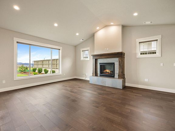 Wonderful Mahar-built, single-level home with unobstructed vineyard views in a vibrant 55+ community! This Earth Advantage Platinum home, just two years old, boasts an efficient open floor plan with high ceilings. The vaulted living room features a gas fireplace, hardwood floors, and picture windows showcasing stunning mountain views. The kitchen has stainless steel appliances, custom cabinets, and a dining area that opens to a spacious patio—perfect for indoor/outdoor living. The primary suite offers patio access, a walk-in closet, and a large en suite bath, creating a private retreat. Two additional bedrooms and a full bath provide space for guests or a home office. A laundry/mudroom leads to the two-car garage for added convenience. With quality construction, thoughtful finishes, and a peaceful setting on a quiet street, this home is a must-see!