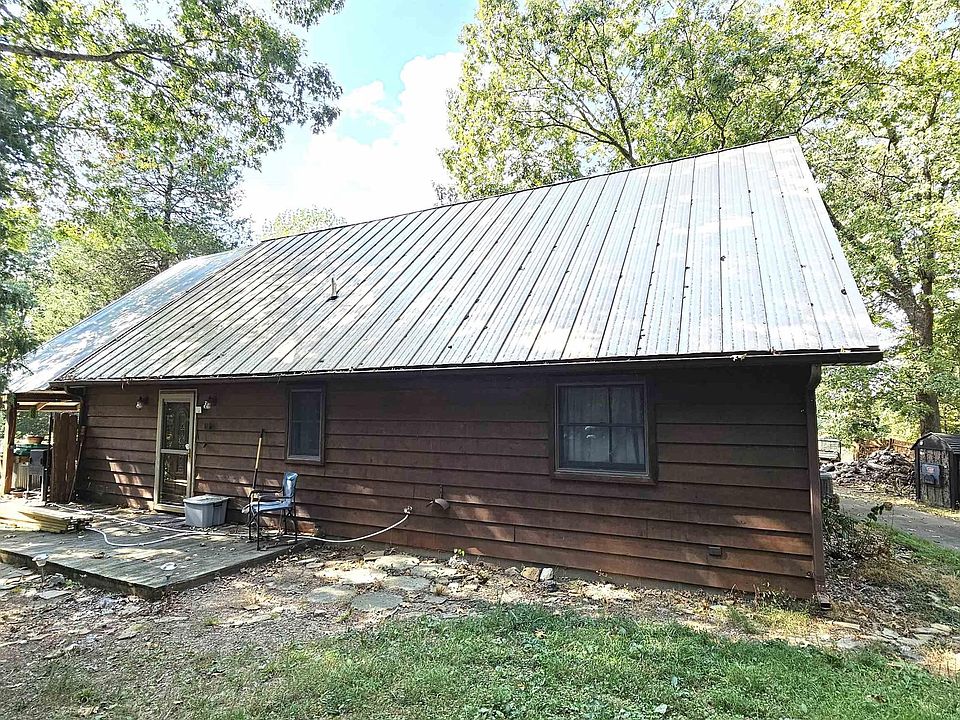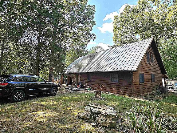 Set on just over 32 acres across three parcels, this property combines privacy, nature, and versatile living. Wildlife is abundant—perfect for deer and turkey hunters or anyone who loves the outdoors. The 3-bedroom home offers an open-concept design with a cozy cabin in the woods feel. Inside, the main level features two bedrooms, a full bath, a laundry room, and a welcoming living area highlighted by a fireplace and a staircase. Upstairs, you’ll find a spacious landing and sitting area, an additional bedroom with large closet, a full bath, and access to a covered deck. Off the deck is a bonus room with endless potential—ideal for a sunroom, hobby space, or plant room. The lower level includes a rec room (or optional bedroom) with its own fireplace, large closet, half bath, and walkout doors to the backyard. Multiple patios surround the home, including a covered patio with a built-in bar for entertaining. Outbuildings add value with a detached garage and attached large lean-to, greenhouse, chicken coop, and livestock shelter. Whether you’re looking for a hunting retreat, hobby farm, or country homestead, this property has space to match your vision.