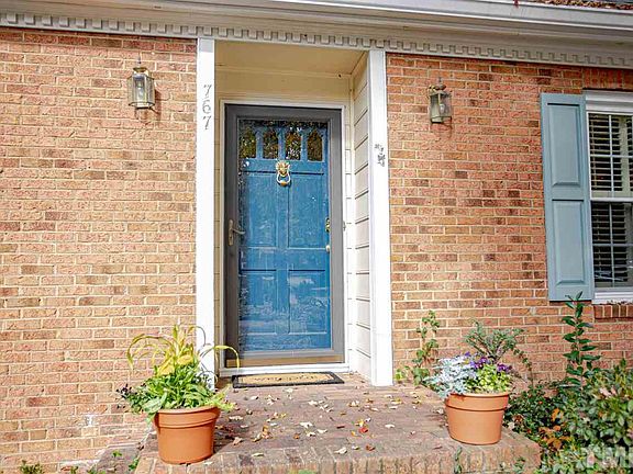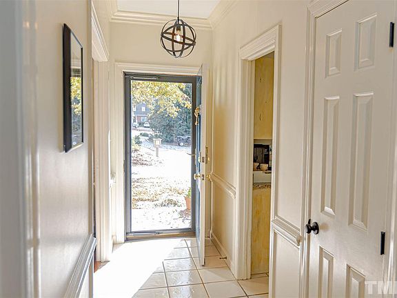 Delightfully decorated end unit townhome with rare first floor owner suite. Freshly painted first floor, Chef's kitchen with lots of counter space, large covered back porch with cute fenced area. You will enjoy the many upgrades throughout. Great storage space - 4 walk in closet areas, storage shed and more. Close to post office, grocery store, library, and many great restaurants. Community offers pool and tennis court. You will not want to miss this one!