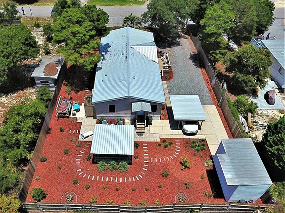 Westwood Circle, West end PCB, 1 mile from the Gulf, 10 minutes to Pier Park, 1 mile to Lake Powell Park, featuring three bedrooms, two baths, over 1500 square feet, updated from top to bottom! The exterior has been landscaped with a new driveway and carport, raised front porch, a workshop / storage building with power and the entire yard is very low maintenance. The interior has an open living and dining area with three bedrooms and two full baths. Master bath has a separate tub and shower. The kitchen is open to another eating / sitting area and also room for a desk and office space. The home is truly move in ready without a need! Bonus: Indoor fireplace and the backyard, a covered patio with a paver floor for entertaining and a summer barbeque. Come Visit Today!