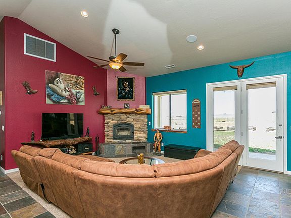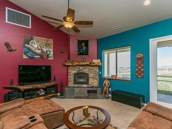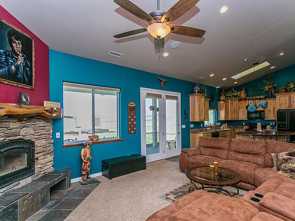 Situated on just over 5 fenced and cross-fenced acres this ranch property in north Antelope Meadows boasts a custom home w/2 car attached garage, 4 stall barn, tack room and 1800 sq. ft detached shop with pull-through garage doors! Home features include great room concept, split bedroom plan with custom touches throughout including extensive slate flooring in all wet/traffic areas, skylights for natural light, large laundry room, vaulted ceilings and hand-carved woodworking including vanities, cornice boxes, kitchen island (top) as well as tv stand & fireplace mantle! Kitchen offers spacious island, custom cabinetry with crown moulding, dovetail drawers & chiseled edge granite counters!Master suite features dual raised height vanity CONTINUED...