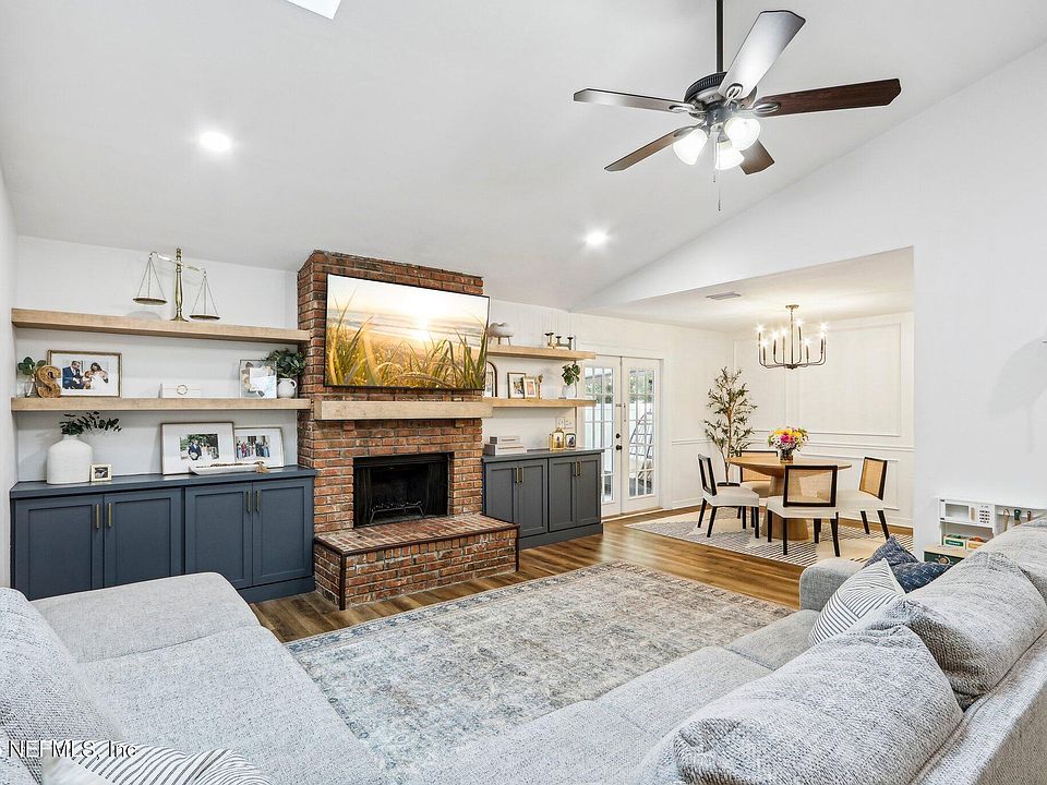 Nestled in the heart of Southside within the secluded Pottsburg Landing community, this tastefully renovated brick home makes you feel like you're strolling through a home design magazine! Upon entering, you'll be greeted by a spacious open floor plan that includes an updated entry way, quaint wood-burning fireplace, high vaulted ceiling, hardwood floors throughout (no carpets!), well-appointed accent walls / built-ins, & updated light fixtures (includes new recessed lights!) - all accentuated by fresh interior paint & added natural light from the updated skylight above! Down the hall, you'll find fans in every room as well as a spacious primary bedroom w/his & hers walk-in closets & a relaxing garden tub in the bathroom. The custom kitchen features white shaker cabinets, granite counters, subway tile backsplash, & stainless-steel appliances. Step out back to enjoy a screened-in covered lanai, new deck & privacy fence. $2k rate buydown plus appraisal w/use of seller preferred lender!