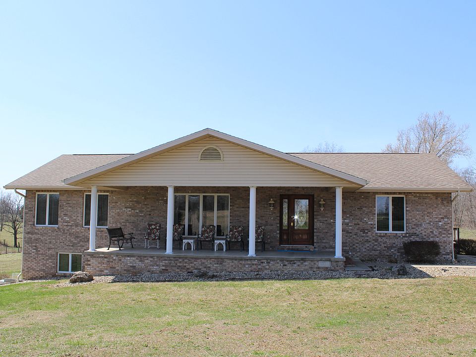 Ranch style with walkout basement. Dinning room and breakfast room. Two kitchens. Large family room with fireplace. Covered front porch and rear deck.Concrete patio at walk out basement door. Close to lake Monroe with pole barn and storage. Private yard.