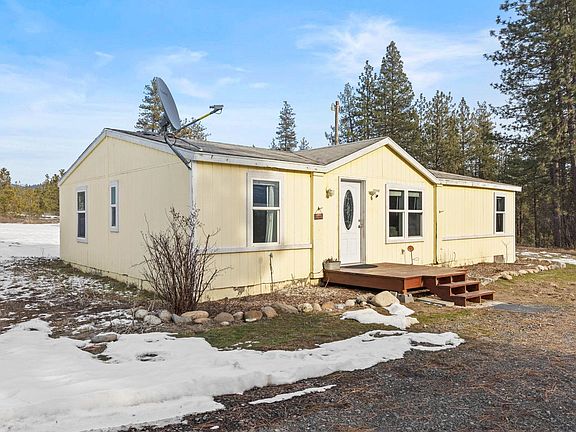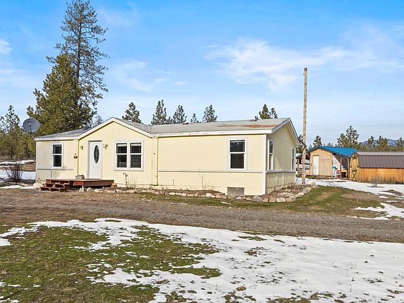 Country living near the river! This light and bright home is located just off the Spokane river on 2.5 beautiful acres. The 3 bed 2 bath doublewide manufactured home is beautiful with an open floor plan, spacious primary bedroom with soaking tub, and walk in closet. High, vaulted ceilings provide tons of light and space. The kitchen is open and oversized with tons of counter space for entertaining. Large dining room with views of wildlife galore! The back door leads to a newer deck and view of a sprawling back yard, storage sheds and garden area. 20+ Gal/min well! This peaceful lot is easily accessible on a private road, with neighbors just far enough away. Just minutes from hunting, fishing and water access. Plenty of room to build your dream shop!
