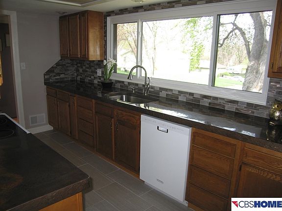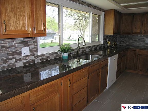 All measurements approximate. Loads of updates including front & back decks, patio door, concrete counters, cool backsplash and ceramic floors in kitchen. Updated main bath with beautiful granite countertop, ceramic floor & nice fixtures.