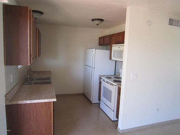 This beautiful 3 bedroom, 1 bath town home has a den, extra storage in the back, no popcorn ceilings, and is fully updated with ceramic tile flooring as well as a remodeled bathroom and kitchen! Step out back to the covered patio with no neighbors behind, allowing you to revel in unobstructed majestic mountain views. Do NOT miss out on this must see!