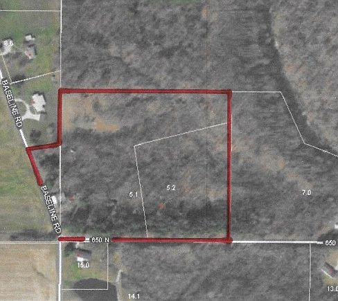 12 Wooded Tract that is comprised of 3 total tracts. With Frontage on Baseline rd and 650 N. There is a pond and an 2 old homesteads that have electric to them. This has been listed with a larger tract OF APPROX 81 ACRES with mls # 301690 listed at $395,000.