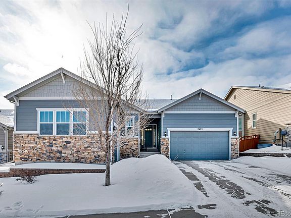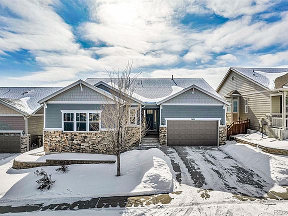 Like NEW home in Cobblestone Ranch! This beautiful ranch style home boasts 3 large bedrooms plus an office. Walking in you will fall in love with the open floor plan and how light and bright this home is. Backing to open space you have privacy and space. The living room flows nicely into the large open kitchen with huge walk in pantry. There is counter space for all of your needs. The center island is perfect for entertaining or as a breakfast bar. The dining room is open and has easy access to the covered back patio. You can enjoy coffee on the covered patio and lookout into the open space and views. The huge master suite has to be seen there is room for all of your furniture, the large 5 piece bath has a soaking tub and separate large shower. The walk in closet has room for everything. The office is right off the entry are giving you privacy as you work from home, this room could also be used as a dining room, playroom and much more. The large bedrooms have walk in closets, and new carpeting. The laundry room is back by the bedrooms and has space to sort and fold your laundry. The guest bathroom is separated into a vanity area and then a room with the bathtub and toilet allowing for more than one person to get ready at once. The full sized unfinished basement is ready for you to make your own, with a rough in stub out for an additional bathroom. The large attached 2 car garage and additional 1 car attached garage gives you room to park 3 cars and also storage. Walking distance to the community pool/rec center, 2 pocket parks, trails and wonderful amenities including the new 12-acre park with playground, biking trails, shelters, picnic tables and benches. Don't miss this beautiful home! Close to Parker, Castle Rock, and Franktown, easy access to I25, DTC, and Denver. Restaurants and shopping near by. Come see all this community has to offer!!