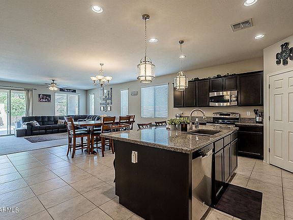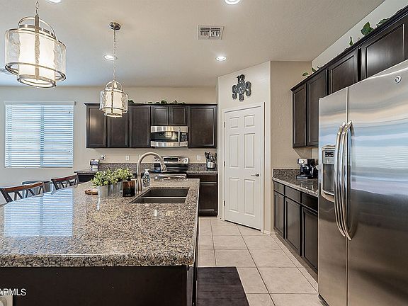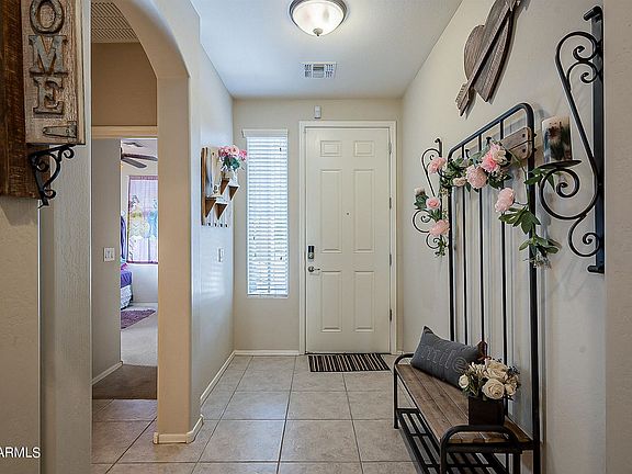This beautiful home is located in the desirable gated community of Rock Springs. Enjoy low energy bills w/OWNED SOLAR & smart thermostat. Single level, 3 bdrms, 2 baths & a den w/over 2200sf. Inside you will find an open floor plan w/out any wasted space. Large kitchen w/walk in pantry, stainless appliances & granite counter tops. Open sightlines to living area w/custom built ins. The main bedroom sits apart from guest rooms & has a large bathroom attached. Separate shower/tub, double sinks & private water closet. Don't miss the backyard w/large covered patio & turf for easy maintenance. Location is convenient to shopping, entertainment, state of the art workout facilities & schools. *$3,000 carpet credit, main bdrm TV included* Buyer to verify all details important including schools*