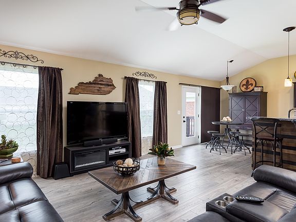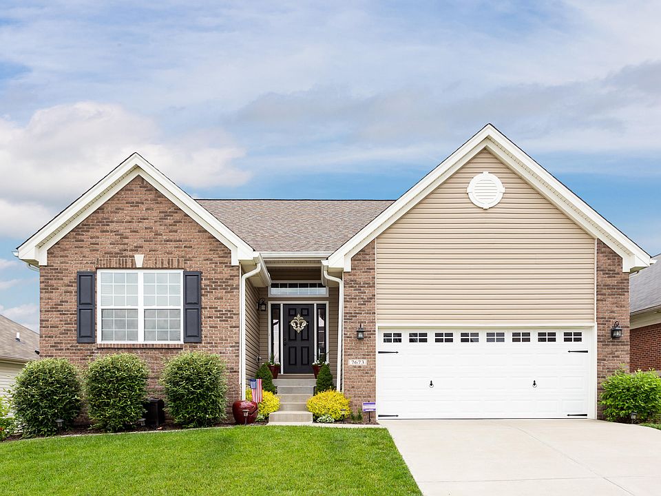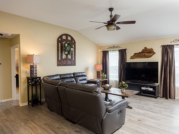 This absolutely lovely and pristine 5 year old home could be the one to delight you! An attractive brick and vinyl exterior is nearly maintenance free. Landscaping and a lush yard enhance the look. Inside, the 10' ceilings and Mohawk RevWood Plus flooring in the foyer, great room, dining room and kitchen will make an impression. This open floor plan also features a stacked rock column enhancing these areas. Lovely neutral décor and meticulous care throughout. Many upgrades were used during the build, and after, like the Corian counters in the kitchen, the composite wood flooring (4/2019) and GE slate appliances, including the convection oven. The washer and dryer (they stay) Whirlpool Duet with steam front loading washer and dryer are included). Guardian alarm system with remote access, wood built in cabinetry in the master bedroom (the safe in this closet does not stay) upgraded cabinets, kitchen backsplash, raised master bath cabinets, extended garage, Hartlage black aluminum fencing, large concrete patio, battery backup and my-Q on the garage door opener, and much more. The kitchen island features reclaimed wood 'siding', 2 Corian counters and seats 3 people. The kitchen has French doors out to the deck overlooking the black aluminum fence enclosed back yard. There is a large patio below. The master bath features a dual vanity and walk-in tile shower. The laundry is on the first floor off the kitchen. The DAYLIGHT basement is well designed to accommodate a family room with large window, perhaps a 4th bedroom, and is plumbed for a full bath, should you want a basement to finish your way. Nice quiet neighborhood under a mile from I-71 at exit 14. Convenient to Crestwood and a quick drive to I-265! Oldham County Schools.