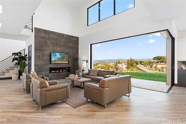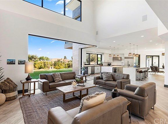 A work of art that will leave you breathless! Situated in a privately gated custom enclave with unbelievable panoramic views, this new construction estate is one of the finest examples of modern architecture! Cutting edge design elements of today with unparalleled finishes and completely open floor plan. Abundance of natural light with walls of windows and retractable zero corner doors allows for complete usability and functionality. Large open family room with 20-foot ceilings, linear fireplace and complete indoor/outdoor living. Chef's kitchen opens to family room and designed with dual islands for food preparation and casual dining allowing plenty of counter space for serving family and guests. Equipped with dual dishwashers, top-of-the-line Wolf 48" Range, Sub-Zero built-in refrigerator/freezer and walk-in pantry. Floor plan lends itself to multi-generational living with large downstairs secondary master suite with patio plus downstairs office. Upstairs find four en-suite bedrooms, loft/game room, laundry and a wall of windows to accentuate the amazing views. Master suite is positioned to highlight the outdoor panorama with a wall of sliding glass doors leading out to covered view balcony to enjoy the city lights and mountains. Master bath offers an abundance of closet space with two large walk-in closets, his and her vanities and a walk-in rain shower and spa bath. Nothing like it available in North Orange County! VIRTUAL WALK THROUGH TOUR AVAILABLE UPON REQUEST!
