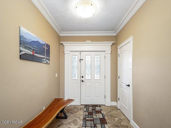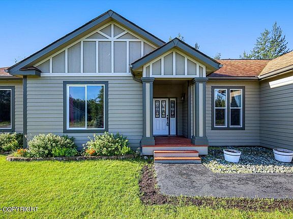 30 minutes from Anchorage, smack-dab in the middle of Palmer & Wasilla, this elegant, spacious, and well kept ranch home is sure to check a lot of boxes for everyone in the family. Beautiful maple cabinets accented with rich cherry trim, fine granite countertops, ornate crown moulding and trim work, & HUGE master suite are just a handful of features that set this property apart.Nearly brand new 10X16' shed & 10X12' greenhouse are included in the sale price!