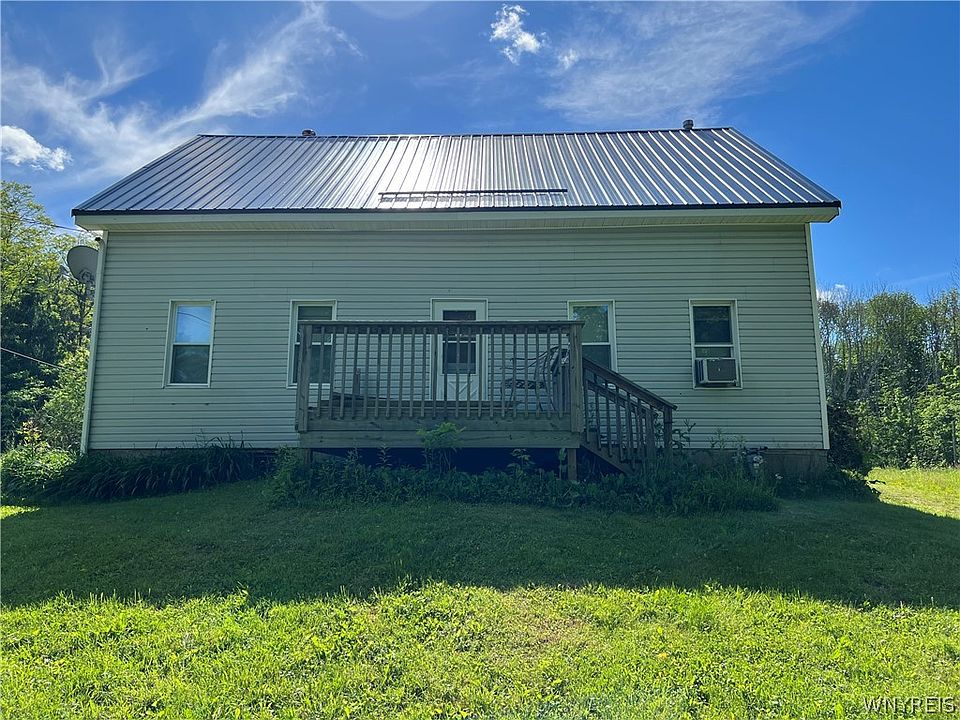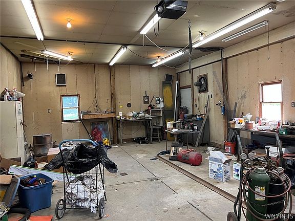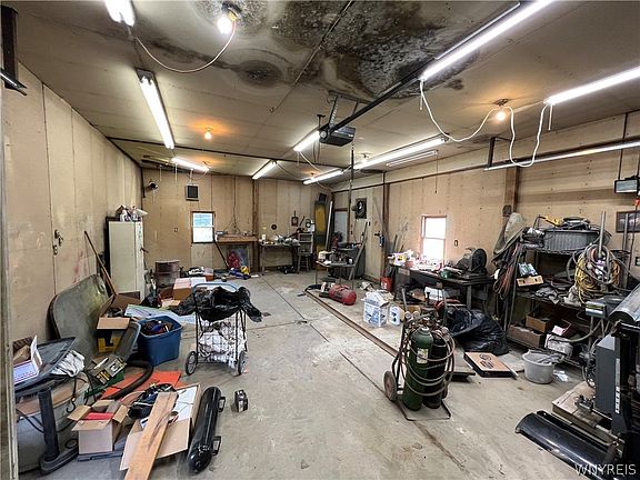 Endless possibilities in restoring this 2 bedroom cape in need of repairs on 5 acres. Many updates make this a great home for the investor with possible additional income from 4 car garage. Unfinished upstairs could be two additional bedrooms. Newer, (2006) 2 bedroom septic. Metal roof approximately 3 yrs, furnace 2 yrs, Hot water tank 1 year. All appliances and wood burning stove included in as is condition. Very irregular lot size, see attached survey. Property to the rear has a 50 foot easement to use the driveway to the left. Tax records list the home as 1953 but stone basement and timbers suggest that the home was built prior to that date. 2022-07-27