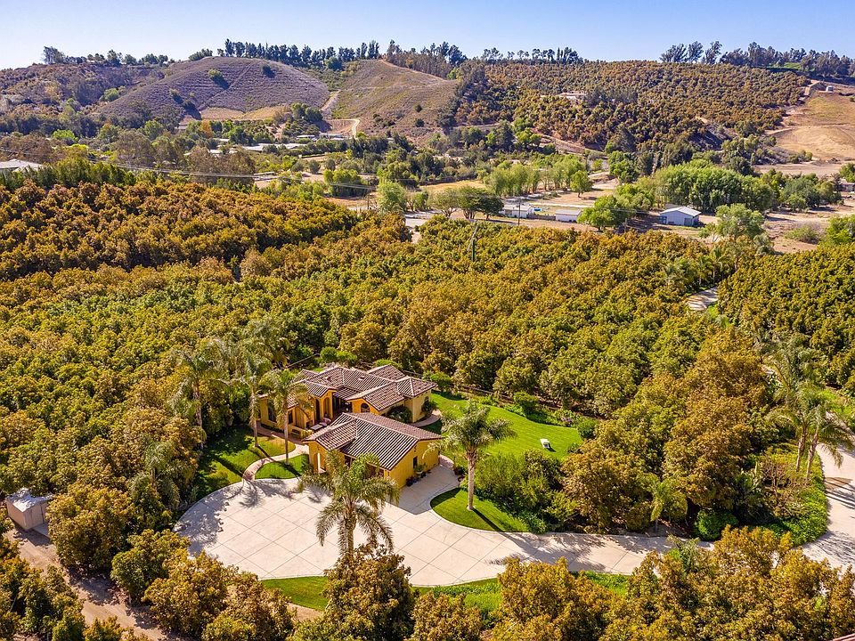 Welcome to Rancho Vista Alegre- a truly spectacular ranch and development opportunity. Over 33 acres of organic avocados have been meticulously maintained with rootstock heritage from Brokaw Nursery- the largest avocado nursery in America and a leader in plant vitality. Incredible built-in benefits to the property include the ownership of its own private well that is fed by multiple strong aquifers producing 300 gallons/min. The private ownership provides significant operational savings and value. This unique property not only has a proper working farm, but also comes with a graded lot and plans to build a personal residence on an exquisite mountain and ocean view parcel at the peak of the property. This site is currently used as a helipad. There is a grand gated entrance with dozens of palms lining the driveway to the residence. This 2 bed/2 bath custom home has been a consistent vacation rental. It can easily be a primary residence or future guest house. Tropical landscaping around the spa adds to the vacation feel while the large grass area offers room to play or add a pool. A second detached garage has a temp controlled wine room. Lush, private and gated, this serene estate offers multiple established businesses and the opportunity to build your dream home. One thing is for certain- there is a peace found here that is once in a lifetime.