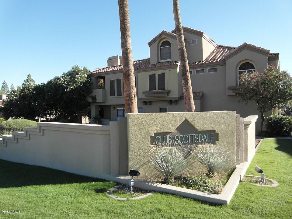 This condo is located in the highly desirable subdivision of Club Scottsdale in central Scottsdale and adjacent to Old Town Scottsdale. It is a ground floor 2 bedroom unit with an open/split floorplan, vaulted ceilings, 2 full bathrooms, full-size washer/dryer, and a 1 car attached garage. The complex is beautifully landscaped and impeccably maintained with heated pool, spa, and BBQ areas. Its convenient location is close to Fashion Square mall, ASU, SCC, Scottsdale Airpark, the Railroad Park, dog parks, and an endless array of shopping and dining. **currently tenant occupied so need 48+ hours notice to view**