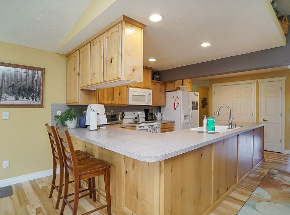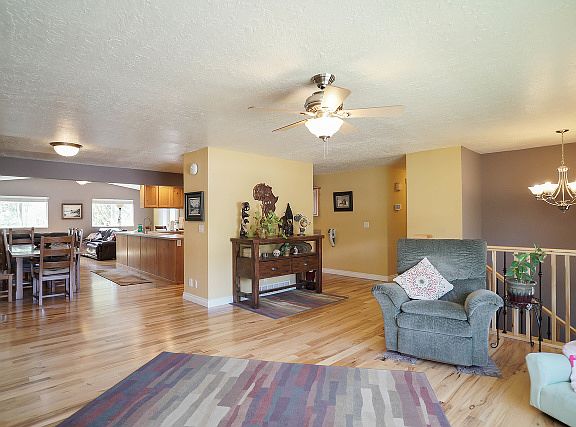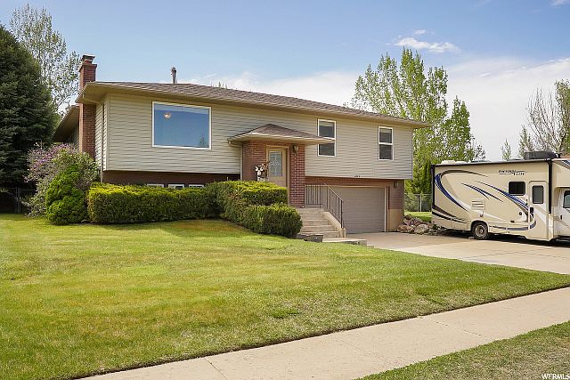 Come see this beautiful well-maintained home in South Weber with RV parking. Stunning mountain view with a fully fenced large back yard and quiet neighborhood. With all the mature trees and one fruit peach and one cherry, lots of birds show up and entertain you as you sit on the deck. Quail are a common sight. There is an area that is all set for a garden. The yard has auto sprinklers. All you need is to sit on the deck that goes around the back of the house and enjoy this beautiful yard. If you care to put in a hot tub, there is a spot designed for it with all the electrical in place. This house remodeled in 2005, has two master bed rooms, one up and one down. Each have their own bathroom. Upstairs master bedroom goes out to the deck. Downstairs master bedroom goes out to the fish pond in the back yard. Upstairs has gorgeous hickory floors. Kitchen is spacious with alder cabinets and room for a large dining table. There are two family rooms. The downstairs has a wood burning stove. There are wireless smoke alarms throughout. There is a covered wheel chair full lift in the back that goes up to the deck. It holds up to 750 lbs. One upstairs bathroom has a walk-in tub. Play set can stay if buyers want or we can remove it.