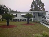 Absolutely adorable 2/2 with captivating view of the green from the enclosed porch. This home has been remodeled in the past year with new wood laminate, vinyl and carpet flooring, wall paper, appliances, split bedroom plan, overhead a/c ducts, golf cart storage, roofover, located in a 24/7 gated community where you OWN YOUR LAND!!!