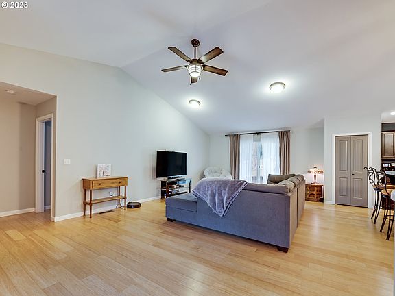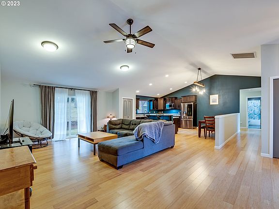 Oakridge's premier neighborhood near the golf course. This home is warm and welcoming with a large great room with bamboo floors, spacious kitchen with stainless appliances, and lots of windows to enjoy the view. Work from home in your office with desk, and entertain on the covered patio and nearly 1/3 acre, then relax in the luxurious primary suite. The garage has high open rafters offering room for storage, expansion, or the sky's the limit. This is a lovely home you don't want to miss!