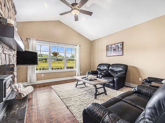 Private 4-bed, 3-bath walkout ranch on nearly 3 tree-lined acres—no HOA! Built in 2015, this open-concept home features vaulted ceilings, stone fireplace, granite island kitchen, and 4-season porch with panoramic views. Main level includes 2 beds, 2 full baths (incl. jetted tub in primary), and laundry/mudroom off 3-stall garage. Lower level offers 2 more beds, full bath, living room with mini kitchen (cabinetry, sink, mini-fridge). Enjoy a 2-tier deck, covered wrap-around porch with lighting, and firepit for sunset views. Rockford Schools. Peaceful setting close to shopping. Owner is a licensed Realtor. Offer deadline Monday, June 23 at noon.