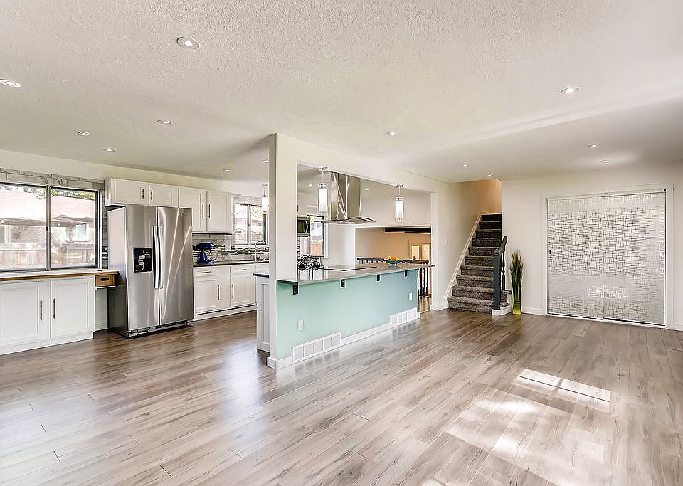 This great property has been fully renovated to create an ideal modern light and bright, 4-bedroom, 2.5 bath, 2,146 sqft split-level ranch style home with open floor plan, central HVAC, and 2-car garage. Huge modern remodeled kitchen, large island, cutting/prep wood butchers block cutting station, great natural light and newly added modern lighting, elegant real wood burning fireplace, and remodeled bathrooms with high end upgrades to the showers, illuminated mirrors and new unique fixtures. The home has virtually everything "new" and unused, including high end brushed stainless steel appliances with an island stove and overhead hanging hood, new furnace, new central A/C, all new lighting, all new doors/closets, new front & back doors, new sliding glass door, new bathroom fixtures, new flooring, new carpeting, new trim, new quiet garage door opener, all new outlets and switches, and a complete roof that is only 4 years old (2014).