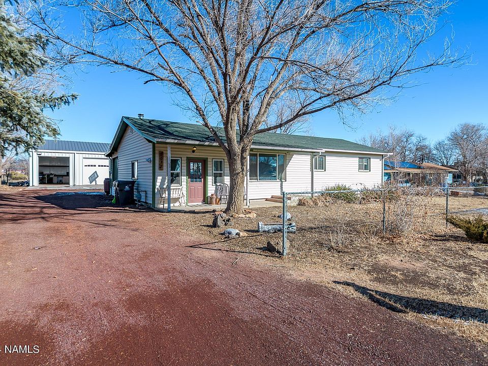 This adorable 3-bedroom, 2-bathroom property is the perfect blend of charm and comfort, awaiting your personal touch. Situated on a spacious 1.02 acre lot, the property offers a large backyard with a chicken coop and plenty of space for outdoor activities. The detached three-car garage, with an adjoining guest suite equipped with a mini split unit and its own hot water heater, presents ample space for vehicles or a multifunctional workshop, along with the added potential to accommodate guests or generate extra income. Notably, the second bathroom is conveniently located in the garage, providing additional flexibility and functionality to the space. Inside the home, you'll find a welcoming Arizona room and a spacious open-concept living area ideal for entertaining or relaxation. Don't mi ss out on the chance to make this house your dream home! Sellers are motivated to sell, sellers sale is contingent on replacement purchase.