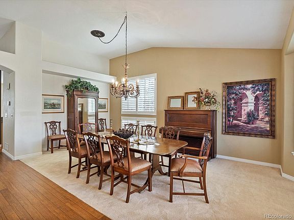 Nestled within the charming Mira Vista neighborhood in Centennial, CO, this remarkable semi-custom home boasts a prime location and sits on one of the largest lots in the area. Crafted by a reputable builder, the residence exudes traditional charm both inside and out. Recently landscaped, the yard is picturesque and offers ample gardening space. Upon entry, admire the new solid wood Craftsman door leading to a stunning bamboo-floored foyer. The spacious dining room, featuring a bay window, adds an elegant touch, perfect for hosting gatherings year-round. Throughout the home, enjoy an open floor plan with archways, vaulted ceilings, and double-pane windows, creating a bright, airy ambiance. The kitchen impresses with granite countertops and high-end appliances, while the living area boasts a beautiful slate fireplace. Three bedrooms with new blinds. Remodeled bathrooms with custom enclosures and granite countertops offer comfort and style. The primary bedroom with an ensuite bathroom features a bay window and a walk-in closet. Additional highlights include a three-car garage, a large deck for outdoor enjoyment, and the potential for basement expansion. Littleton Public Schools, and a neighborhood park, Tony's Meat market, and Lifetime fitness center nearby make this neighborhood and home the best of Centennial living.