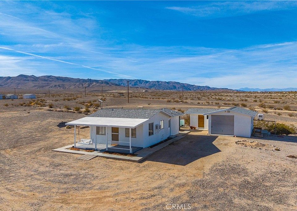 Genuine Peace and Quiet. This charming two bedroom, one bathroom home awaits your arrival. If you are looking to get away from the madding crowd, this sanctuary is for you. Set on the southern side of amazing, Wonder Valley, beyond the Airport, it is near to the pavement of Highway 62 and ten minutes to Downtown 29 Palms. But it is set far enough back from that road for you to feel like you're in the middle of nowhere. This is for those sick of the rush hour traffic, the pushing and shoving at the grocery store and the general stress of city living. This small but mighty home is sunny and inviting with plenty of homey warmth for you to settle into at the end of a long day. A country kitchen, laminate flooring, wall mounted AC units it combines comfort and rustic charm. Not to mention the gorgeous front porch where you can sit and watch Mother Nature move the sun, moon and stars for your enjoyment as light moves over the nearby mountains. Wonder Valley is a Dark Sky area and the stargazing here is unbeatable. With a fully detached garage that could be an amazing workshop and a bonus storage area, this home is a wonderful Mojave escape from the ordinary. With high speed Starlink for internet, you can enjoy the 21st century while enjoying the spectacular beauty of the Hi-Desert. Just 15 minutes to Joshua Tree National Park's entrance, close to local amenities like the JTNP Visitor Center, Freedom Plaza, local restaurants and shopping as well as the Farmers Market. Many parcels nearby are government owned, thus unlikely to be ever used for new construction. If you are looking for real peace and quiet, you've come to the right place.