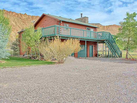 Views! Views! Unique log home with 360 degree views. Open floor plan with living, dining, kitchen & master bedroom on the upper main level. Has all the charm and feel of a mountain cabin with hardwood floors, vaulted ceilings and wood burning fireplace. 2 additional bedrooms, family room, garage and full bath on the main walk out basement level. A large deck that wraps around 3 sides to enjoy the views and a brand new hot tub. Situated on .75 acres with room for all your toys and surrounded by orchards. Exterior is newly stained and painted. Seller reserves the right to this years cherry crop which will be harvested approximately mid June.