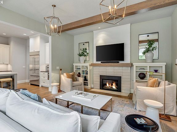 Situated in the heart of First Addition! The Primary Bedroom is on the Main Floor! The main floor boasts hardwood flooring throughout, a gourmet kitchen with quartz countertops, a tile backsplash, stainless steel appliances and custom cabinetry. The oversized island flows to the great room with a fireplace surrounded by built-in bookshelves. The wall of La Cantina folding window/doors create a seamless indoor-outdoor flow. The primary suite is an in-home retreat with dual sinks, quartz countertops, counter to ceiling tile backsplash, a walk-in shower with a frameless shower door, a freestanding soaking tub, and a spacious closet. The private office and a laundry room complete the main floor spaces. This fantastic First Addition location is just blocks to restaurants, boutiques, the Lake Oswego Library, parks and the Farmer's Market.