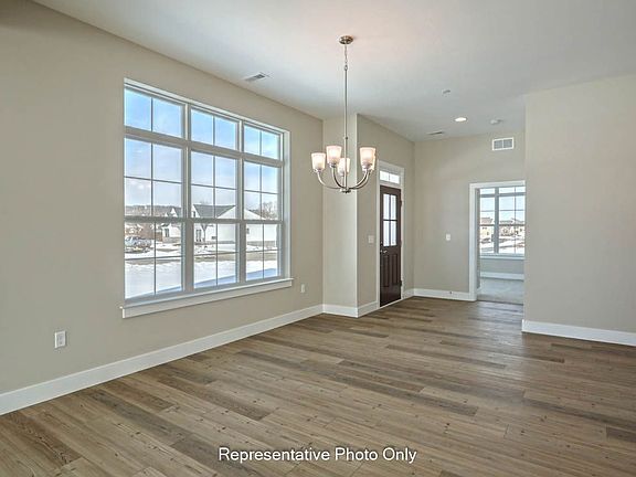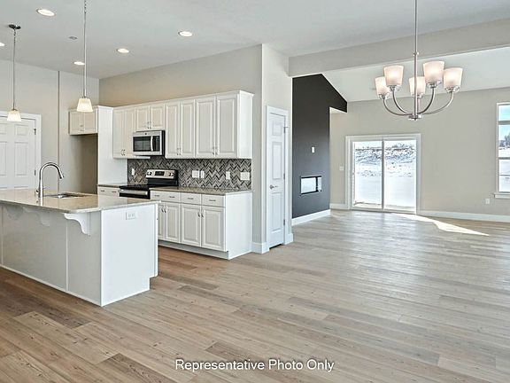 This 1-story end-of-row townhome includes a 2-car garage, convenient storage area, and boasts lofty 10ft ceilings.. Stylish vinyl plank flooring flows throughout the main living areas. To the back of the home is the spacious owner's suite with an expansive closet and private bathroom with double bowl vanity and 5' tile shower. The kitchen is well-appointed with upgraded appliances and quartz countertops with tile backsplash. Sliding glass doors off the family room lead to rear patio. The family room is warmed by a cozy gas fireplace with stone surround and box beam mantel. An additional bedroom, full bathroom, and study are located towards the front of the home. Amenities: Daylight Basement