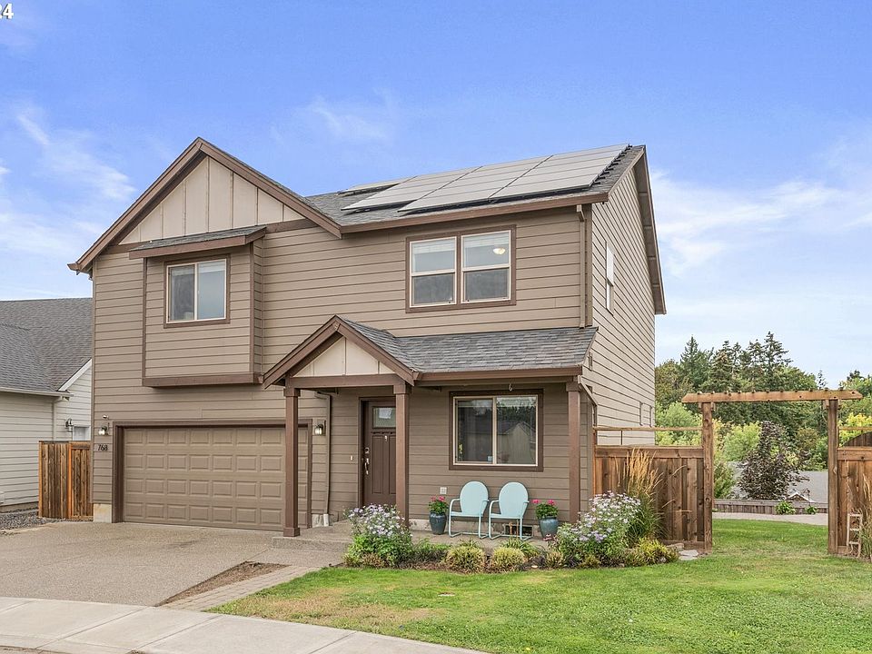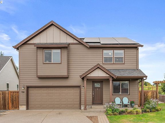 Back on the market at no fault of the seller. Welcome to this charming home in Dayton! This spacious two-story residence has 5 bedrooms, 2.5 bathrooms, and an inviting open floor plan. The large loft offers versatile space for a home office, media room, or play area. The wonderfully landscaped backyard with an in-ground sprinkler system features a fire pit, hot tub, a covered deck — ideal for entertaining or relaxing. This home is well maintained and truly move-in ready. Homes in Dayton are hard to come by at this time, so don't miss the opportunity to own this exceptional property nestled between Newberg and McMinnville, a most convenient location to visit all the amazing wineries Yamhill County has to offer! Hot tub, shed, galvanized planters, and firepit included. **Rate reduction offered, lender paid, for the first full year on a conventional mortgage when using preferred lender!**