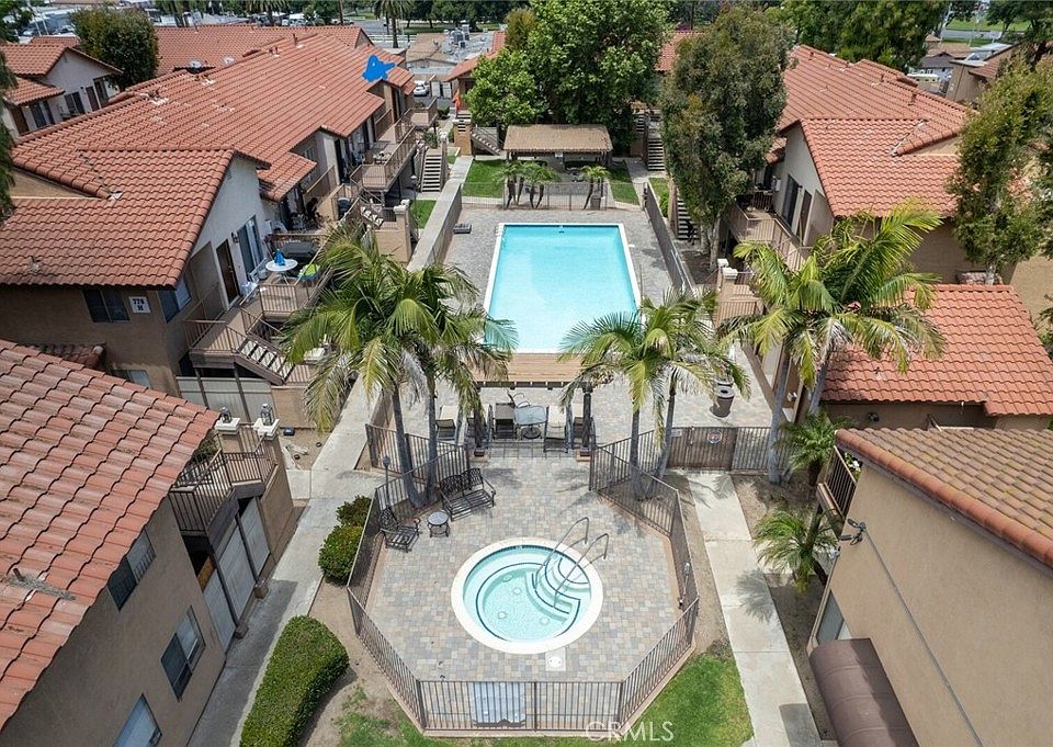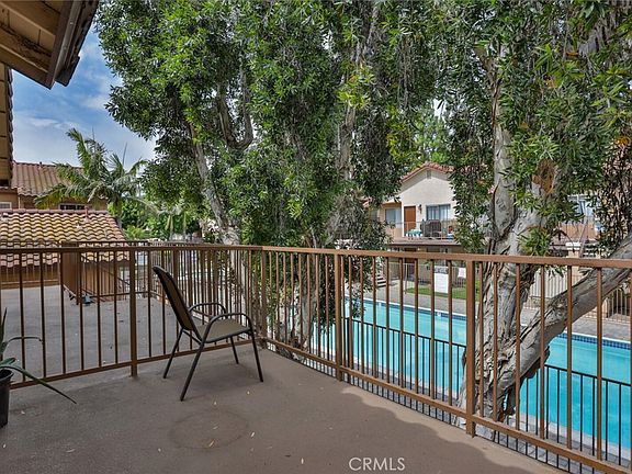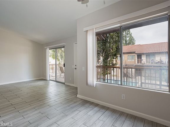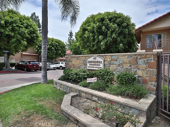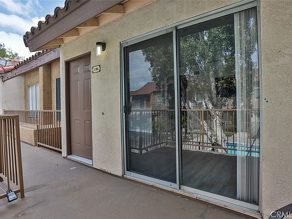 Welcome to Your New Home! This Unit has been freshly painted including the Grey kitchen cabinets. Upon entering this light, bright and Airy Home you will step onto the Designer Grey Vinyl wood like flooring. This Home opens to a large living room with an additional area for your Dining set. In the Living Area a Large Screen TV is being offered with this Stunning Home. One of the main features of this home is that it has it's own washer and dryer which also are being offered. The Beautiful and Freshly painted kitchen and cabinets also have Granite Counter Tops . The Guest bath also has granite counter tops as well as the Master Suite bath. Looking to relax well just sit outside on Your patio, grab a beverage and gaze out over the Sparkling Pool and Spa or pop down and take a swim or just hang out in the Spa! There is also a rear Patio off of the bedroom. The Private 1 car Garage has been freshly painted and is only steps away from your home and there is also a secondary parking spot assigned to this unit. For those who need to Communite this is the perfect location as it is situated freeway close to the 91 and 15 freeway! Make this Comfortable and Quiet Condo Yours Today!