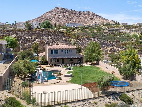 Gorgeous 5 bedroom, 4 bath estate home with spectacular views! Beautiful new luxury vinyl plank, waterproof flooring and plantation shutters throughout downstairs. Newly remodeled gourmet kitchen with gorgeous quartzite counters and huge kitchen island perfect for entertaining. Built in stainless steel appliances including a built in Kitchen Aid refrigerator, oven and new dishwasher, two pantries, eat-in kitchen and a multitude of storage make this kitchen a dream. Spacious formal living room and dining room and huge family room with surround sound speakers and beautiful stacked stone fireplace that opens to the kitchen make for the perfect family floor plan. Convenient downstairs bedroom and ¾ bathroom are perfect for guests. Upstairs youâll find 4 more bedrooms and 3 more full bathrooms, and a loft area with a huge balcony, perfect for an office or a living area that would do well as a mother in lawâs quarters. French doors throughout, leading to the sprawling entertainers dream backyard with fantastic views, complete with pebble tech pool with stacked stone, swim step and spa, complete with water feature and slide. The covered patio with outdoor speakers and ample outdoor space are perfect for lounging and large gatherings. The in ground trampoline and basketball court will provide countless hours of fun for everyone! Plus this property has a nice sized area for RV Parking!This beautiful home is truly the one youâve been waiting for, hurry before itâs gone!